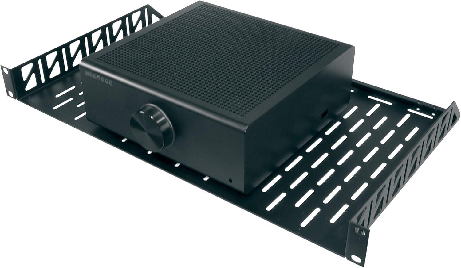 EIA/TIA compliant 19 inch solid, one-piece 16-gauge steel rack shelf by Middle Atlantic Products model U1V (1 = number of rack spaces) and have ventilated bottoms and sides. Weight capacity shall be 35 lbs. Rack shelf feature durable flat black powder coat finish. Vented U series rack shelf shall be GREENGUARD Indoor Air Quality Certified for Children and Schools. Vented U series rack shelf are RoHS EU Directive 2002/95/EC compliant.Vented U series rack shelf are warrantied to be without defects in material or workmanship under normal use and conditions for the lifetime of the product.