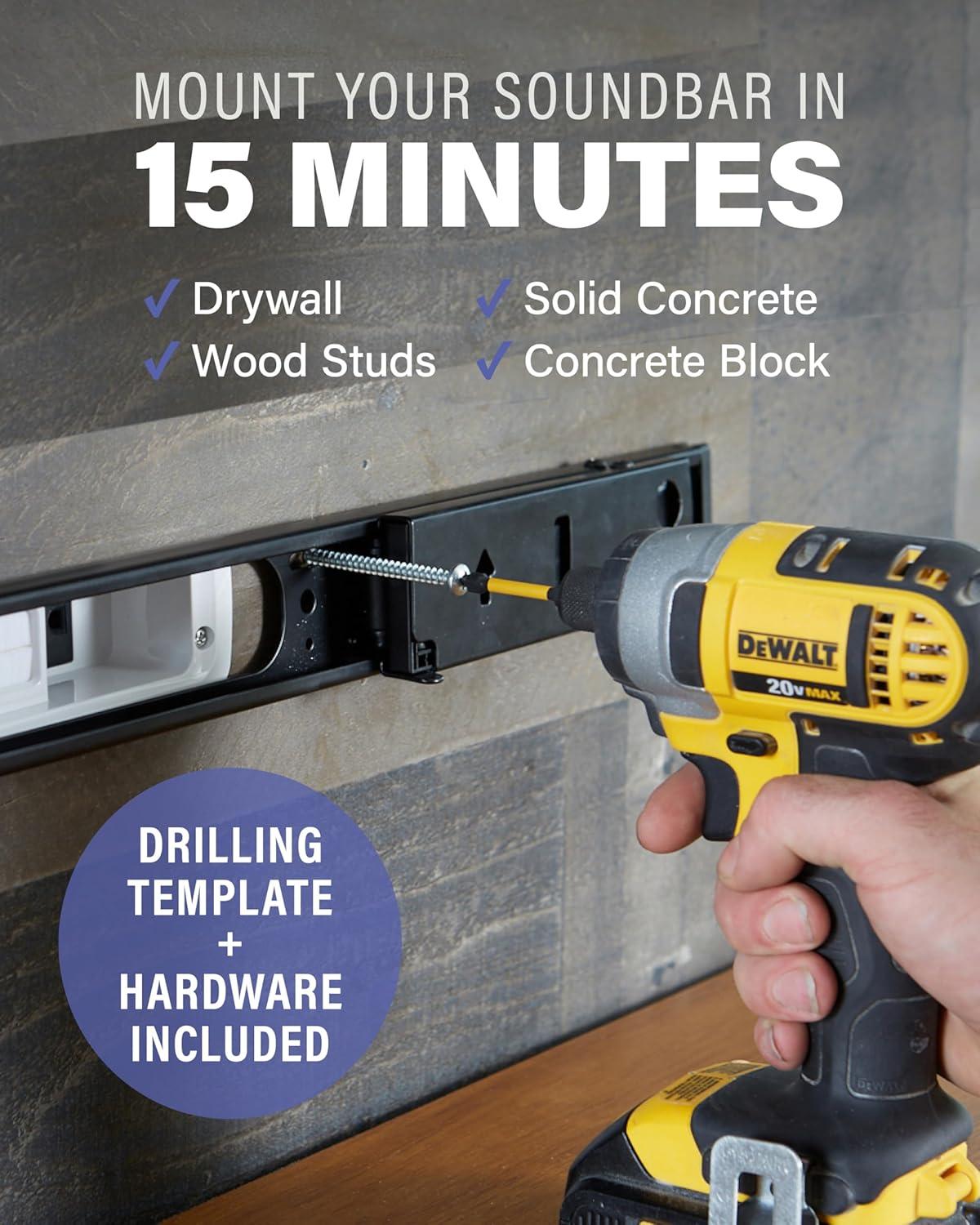 Easy Install: Mount it right where you want it. Drywall and wood stud compatible so you’ll be able to perfectly center your speaker under your TV. All necessary hardware included!