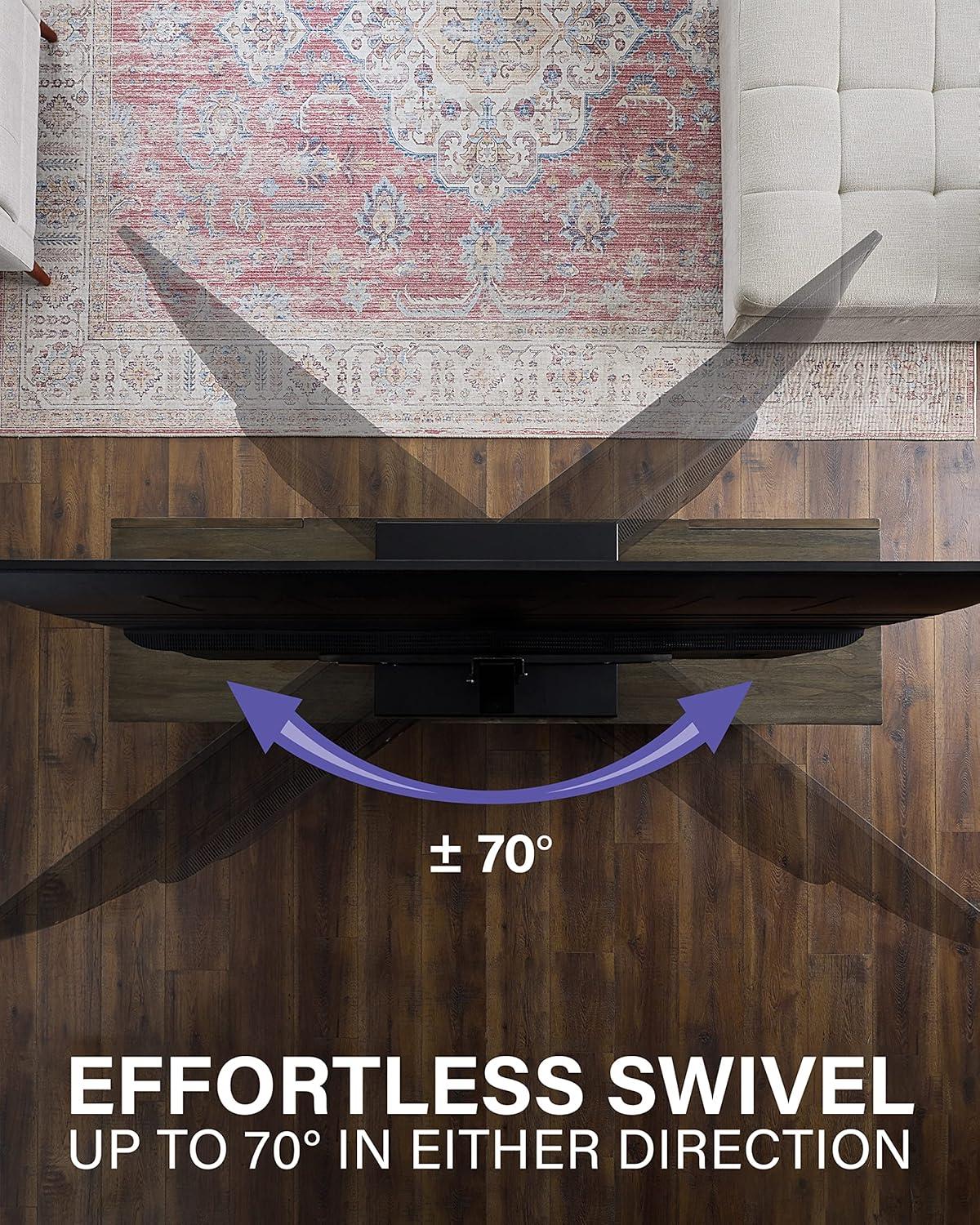 Cord Clutter, Begone: Designed with integrated cable management, this swivel TV stand effortlessly conceals cord clutter to give an organized appearance for distraction-free viewing.